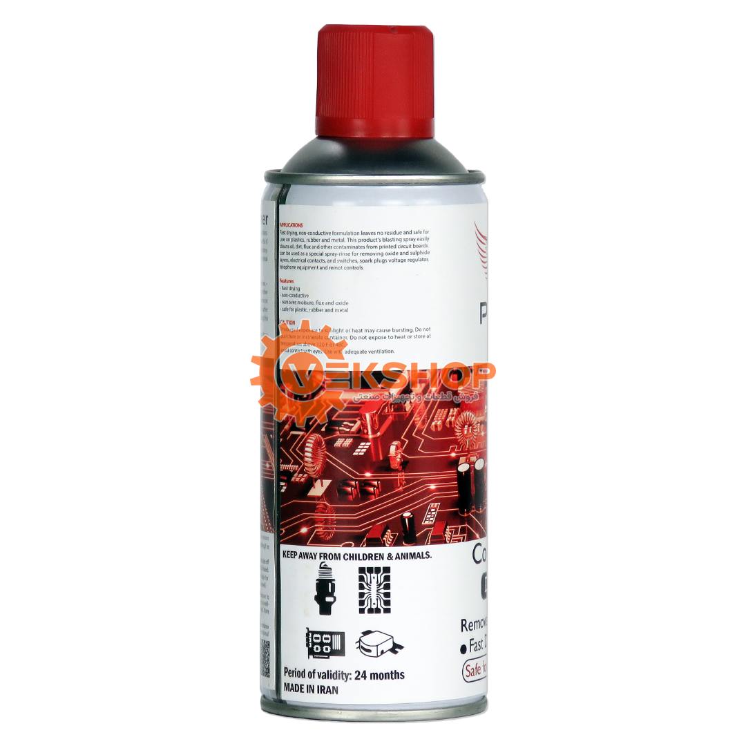 این اسپری خشک قابلیت پاک‌کنندگی و چربی ­زدایی بالایی دارد، به خوبی چربی لحیم­کاری، خازن­ ها، دکمه ­های تلفن، سنسورها، سوییچ ­ها و رله ها، قطعات پلاستیکی حساس، کنتاکت ­ها، هدهای مغناطیسی را از بین می‌برد و بهترین و مطمئن‌ترین ابزار برای شستشو و تمیزکاری برد محسوب می‌شود.
