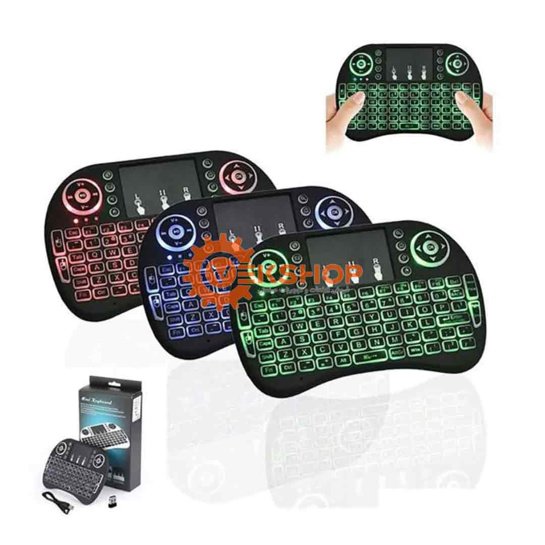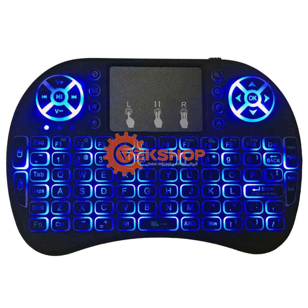 نوع اتصال این مینی کیبورد به صورت بیسیم از طریق دانگل USB میباشد. i8 backlit دارای باتری قابل شارژ و سه رنگ مختلف بک لایت است؛ آبی، سبز و قرمز که جلوه زیبایی به آن میبخشد و امکان دید مناسب در محیط تاریک را فراهم میآورد.