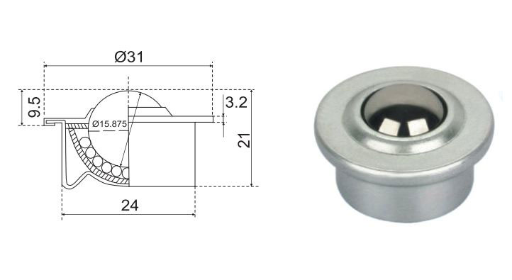 بلبرینگ چشمی مدل YD115 به همراه ساچمه حمل کننده لبه دار توکار