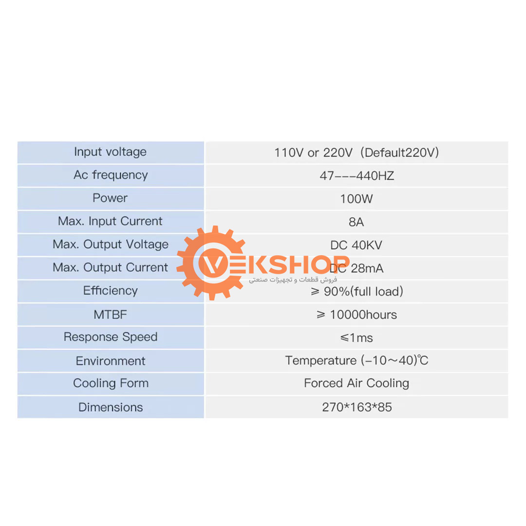مشخصات پاور دستگاه لیزر ۱۰۰ وات DY13